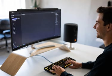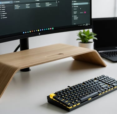 O que separa um setup "pobrinho" de um setup de elite são os detalhes. Em 2026, você não precisa de um mouse de R$ 800. O segredo é investir em um Desk Mat (mousepad gigante) de feltro ou couro sintético. Ele "limpa" visualmente a mesa e dá uma cara de escritório de arquitetura instantaneamente. Combine isso com um suporte de monitor de madeira clara e pronto: você transformou uma mesa simples de R$ 200 em uma estação de trabalho de alto nível.