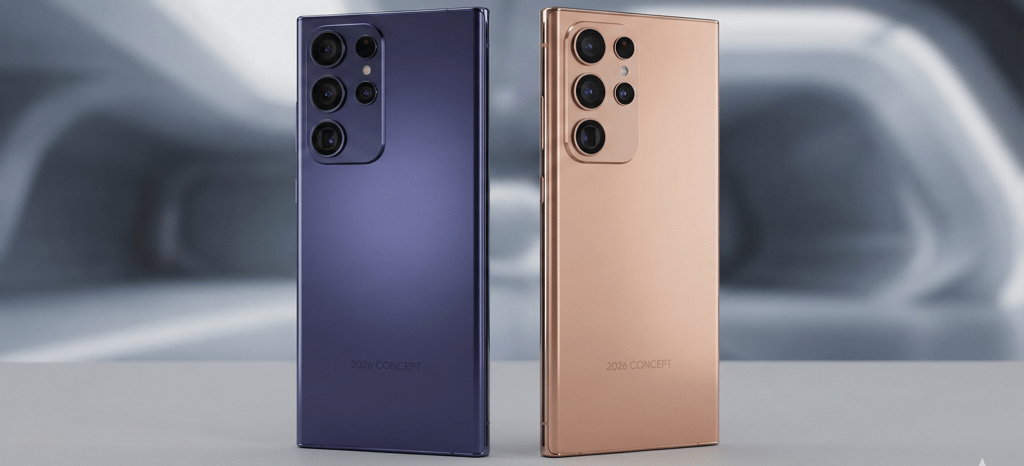 Conceito do Galaxy S26 Ultra nas novas cores vazadas Cobalt Violet e Pink Gold